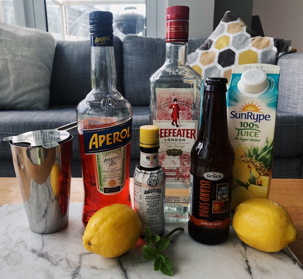 Hello everyone! I wanted to share a refreshing treat with you to kick off patio season! This delicious Ginger Gin Fizz has everything you I love in a cocktail – a spicy kick from ginger beer, bittersweet orange, the tartness of lemon, and the familiar tang of pineapple juice. Combine these flavourful ingredients for a beautiful and light summery cocktail, perfect for enjoying on the patio.